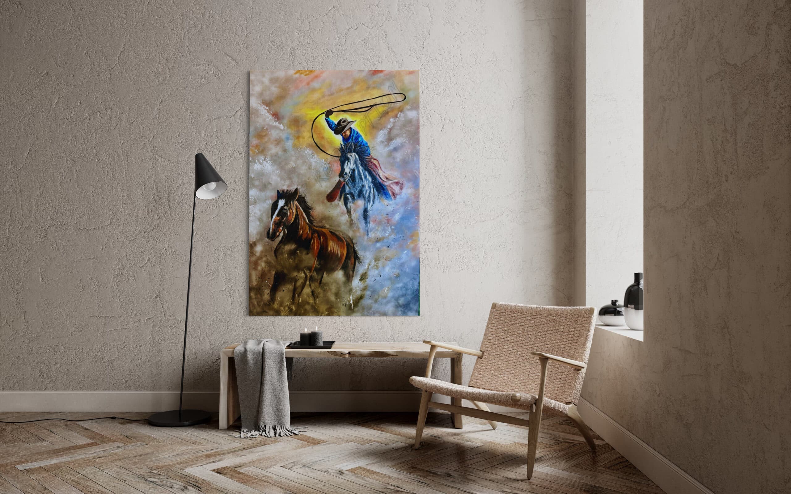 The painting speaks to the healing of the orphaned heart, the places where independence became survival, and solitude felt safer than trust. Here, freedom is not found in running alone, but in learning to run together.